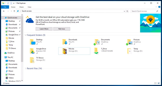 "The bad news is that the reason it's so easy is because Microsoft appears to be inserting OneDrive advertisements directly into the Windows 10 File Explorer windows."